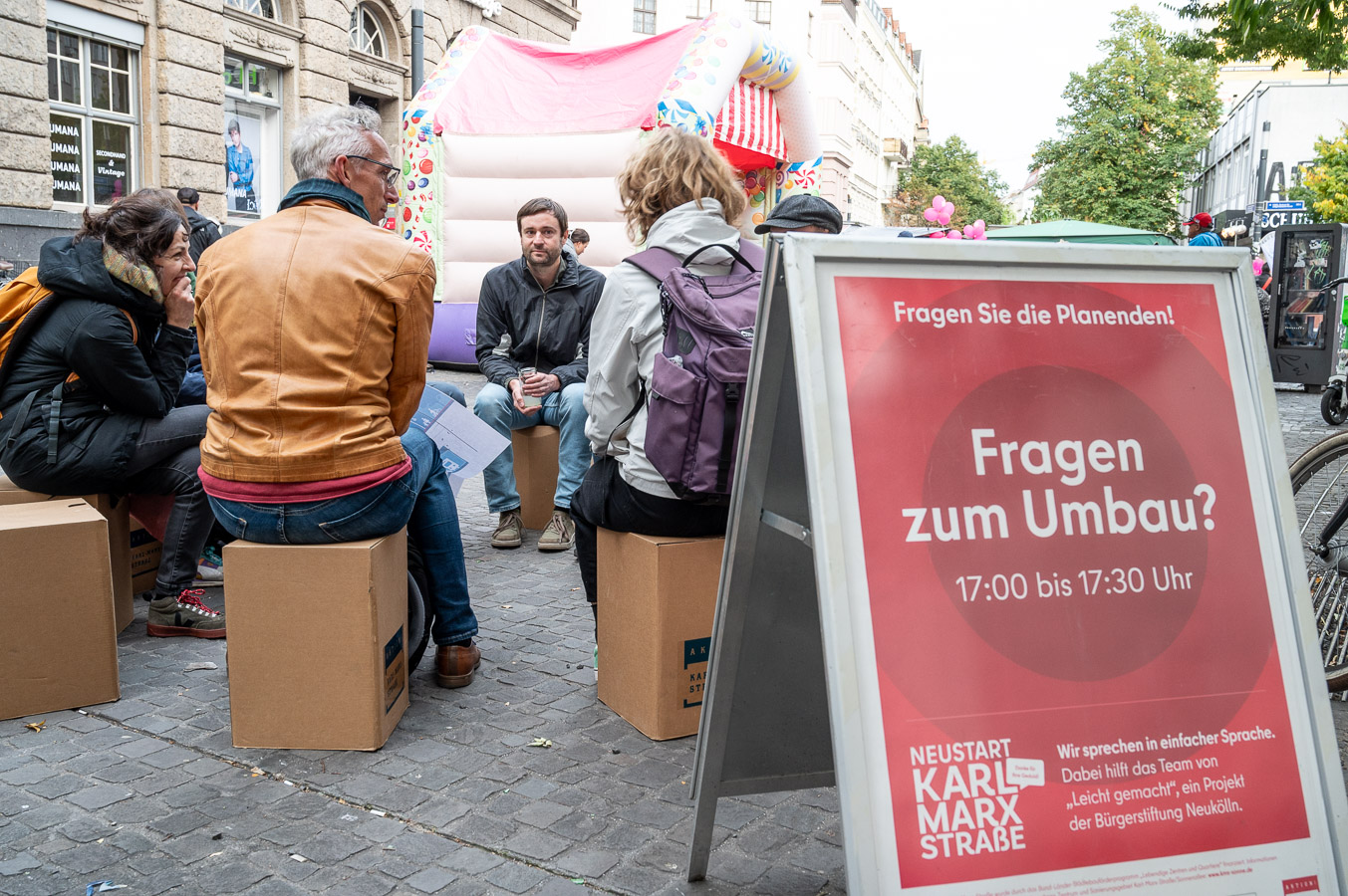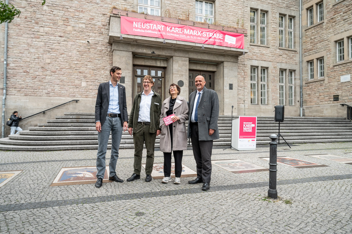 Am 26. September 2025 ging es in der Karl-Marx-Straße außerordentlich feierlich zu. Das Bezirksamt hatte alle Interessierten, Anwohnenden, Gewerbetreibenden sowie am Umbau Beteiligten dazu eingeladen, gemeinsam die Fertigstellung der Umbaumaßnahme zu feiern.
