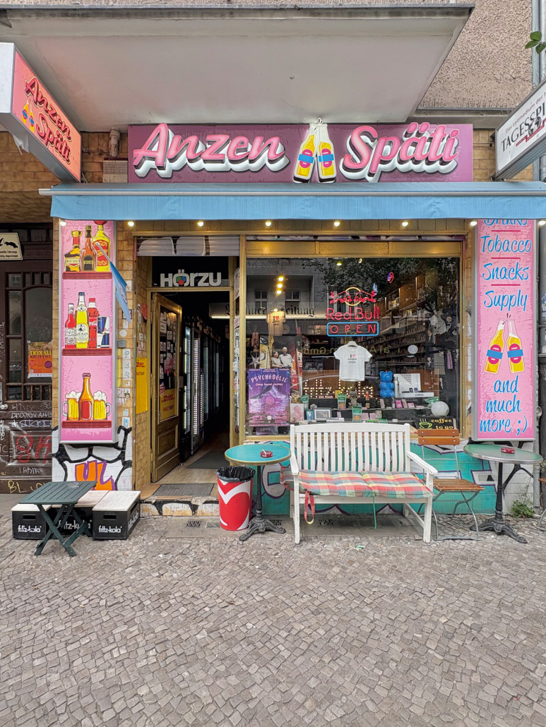 Sei es, um ein Paket abzuholen, ein schnelles Wegbier zu kaufen oder doch auf ein gemütliches Feierabendgetränk zu verweilen – der Berliner Späti ist eine der wenigen Institutionen, die von Menschen aller gesellschaftlichen Hintergründe besucht werden. Zwar gibt es mittlerweile viele Spätis, die austauschbar erscheinen, doch so manch einer hat sich zu einem bereichernden Begegnungsort etabliert. So auch der Anzen Späti, der neben seiner Laufkundschaft auch viele Stammkund*innen zählt.