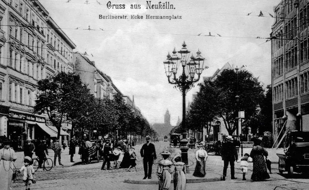 Frühe Gaslaternen in der Karl-Marx-Straße (ehemals Berliner Straße)