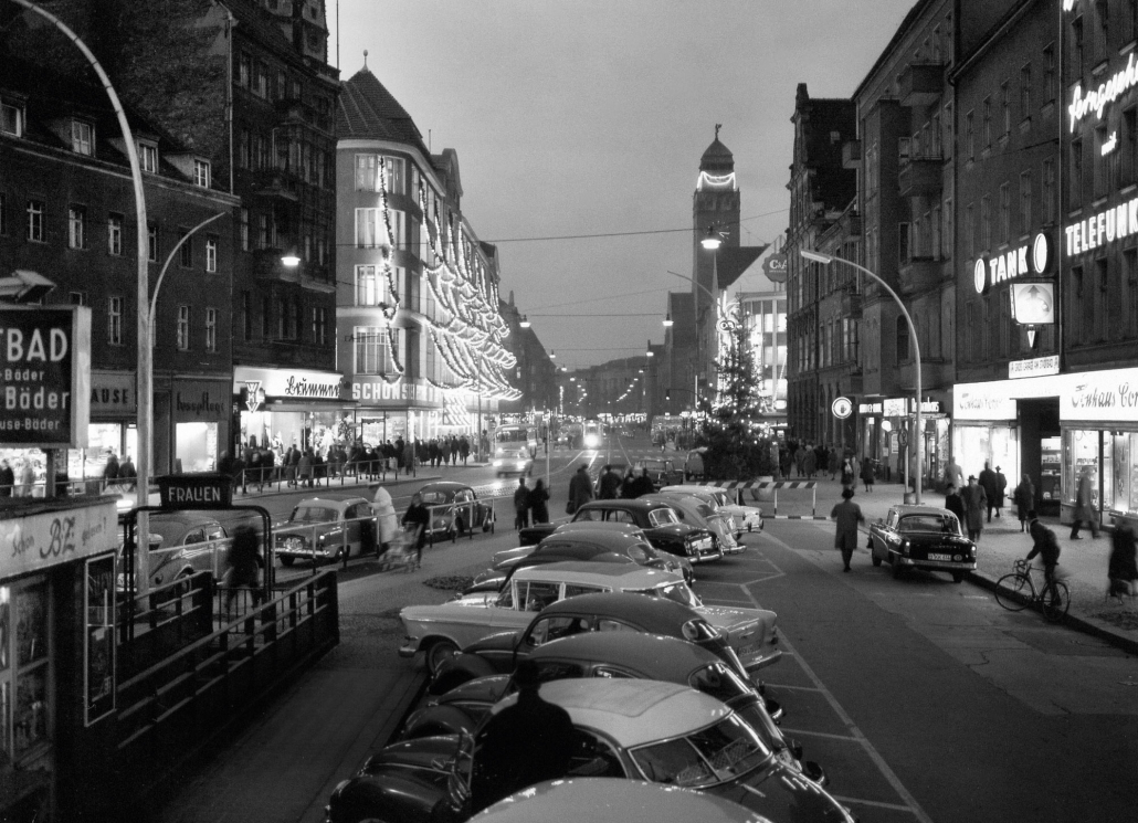 Weihnachtsbeleuchtung in der Karl-Marx-Straße, 1962