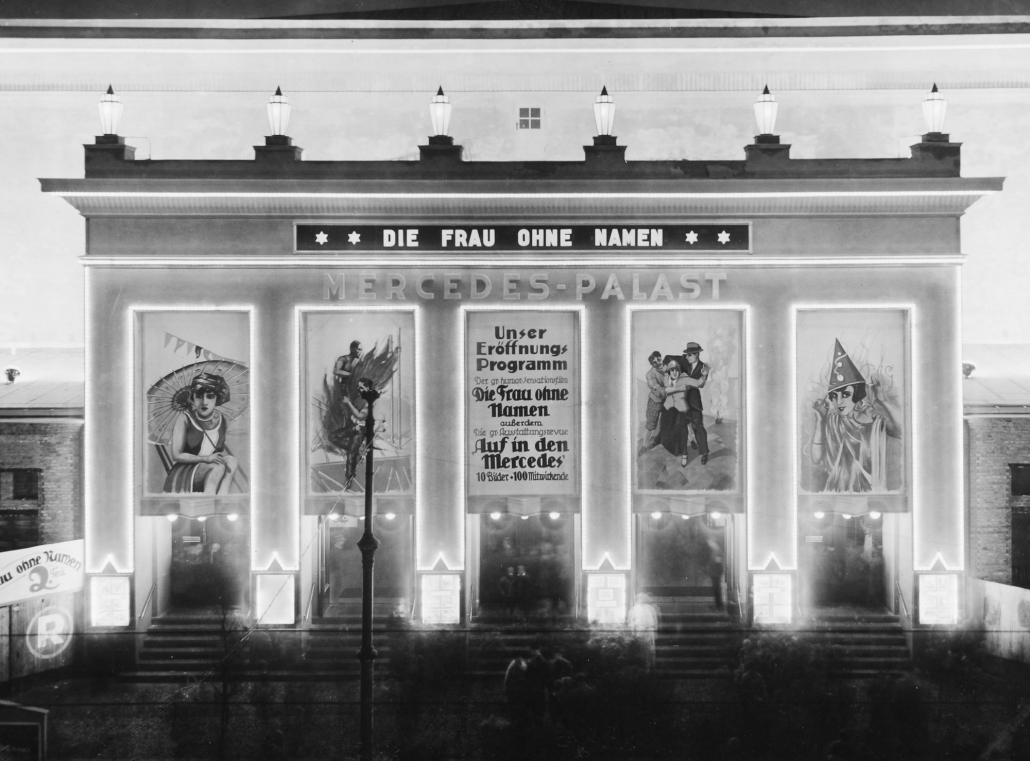 Auch in Neukölln wurden im Rahmen von „Berlin im Licht“ zahlreiche Schauplätze inszeniert. Dazu gehörte beispielsweise der ehemalige Mercedes-Palast, ein Filmtheater mit 2.500 Plätzen in der Hermannstraße 214–216. Neukölln, das seit der Eingemeindung im Jahr 1920 zu Berlin gehörte, galt zu dieser Zeit aus städtebaulicher Sicht als eines der innovativsten Gebiete der Stadt. Der Mercedes-Palast und das 1929 fertiggestellte Kaufhaus Karstadt zählten damals zu den jeweils größten Bauten ihrer Art in Europa. Doch „nirgendwo in Berlin wurde eindrucksvoller als in Neukölln demonstriert, wie nahe in den vermeintlich goldenen Zwanzigern Glamour, Vergnügen, Armut, Wohnungsnot und Arbeitslosigkeit beieinanderlagen“, heißt es in einer Publikation des Museums Neukölln (siehe Quellenangaben). Denn so fortschrittlich Neukölln in städtebaulicher Hinsicht war, so einkommensschwach war seine damalige Bevölkerung. Auch wenn der Kinopalast in der Hermannstraße als erschwingliches Volkstheater seine Eintrittspreise an die gering verdienende Arbeiterschaft anpasste, galt die glamouröse Außenwirkung vor allem einem: der Inszenierung einer fortschrittlichen Weltstadt.