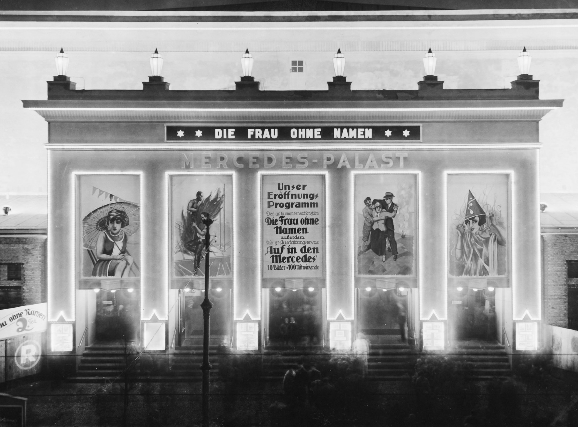 Der beleuchtete Mercedes-Palast in der Hermannstraße während des Lichtfestes 1928