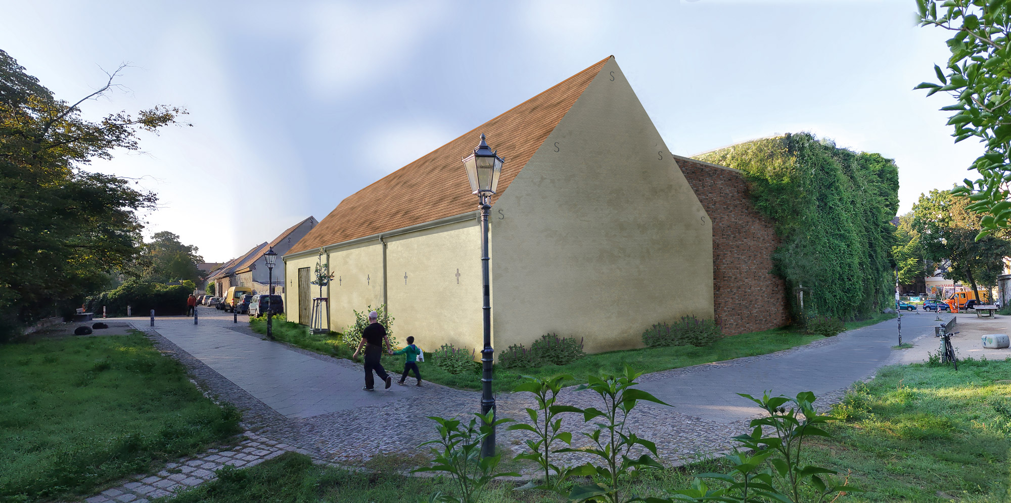 Schematische Darstellung der denkmalgerechten Erweiterung des Umspannwerks Ecke Richardstraße/Jan-Hus-Weg (© Stromnetz Berlin)