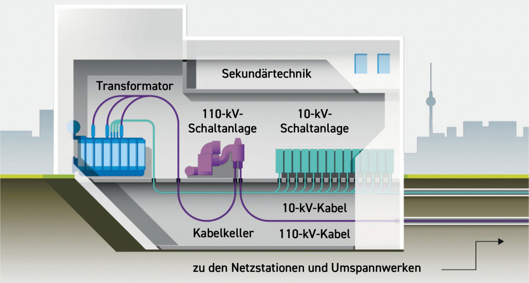 Beispielhafter Aufbau eines Umspannwerks (© Stromnetz Berlin)