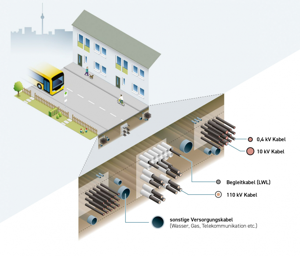 Versorgungsleitungen im Berliner Boden in unterschiedlichen Tiefen (© Stromnetz Berlin)