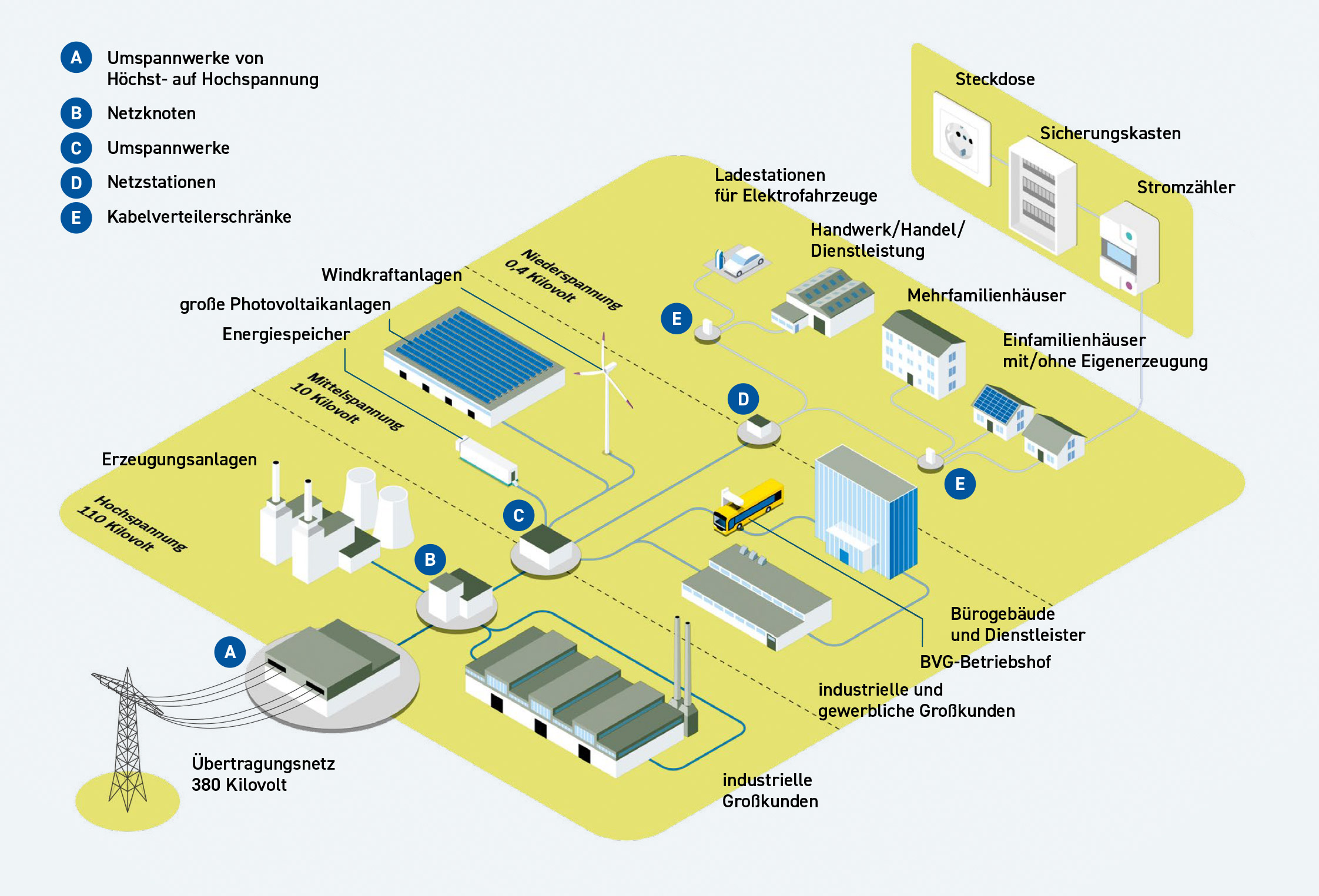 Vom Übertragungsnetz bis zur Steckdose (© Stromnetz Berlin)