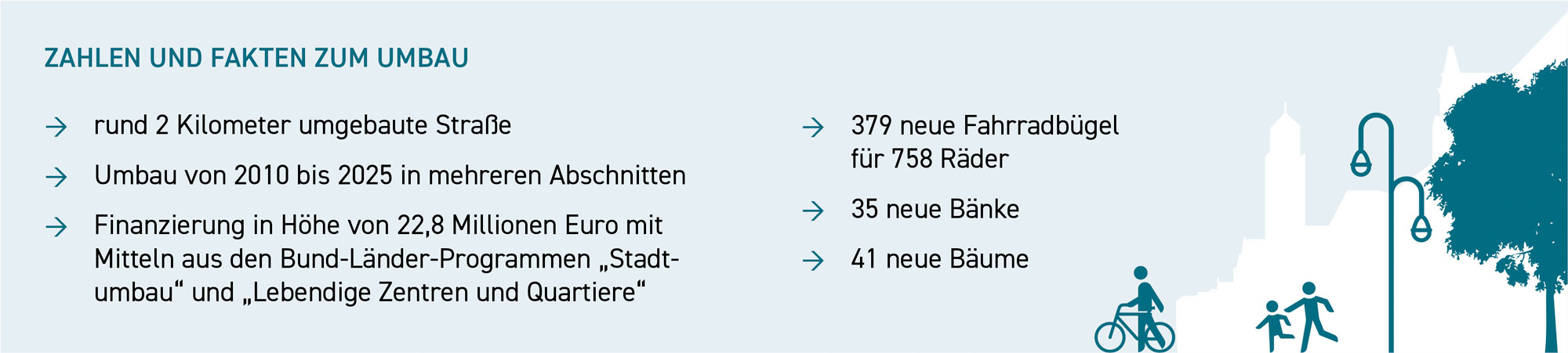 Mehr Platz gibt es nun für Zufußgehende und Radfahrende, aber auch für Außenterrassen von Cafés und Restaurants. Außerdem wurde die Straße mit neuen, hochwertigen Bänken, Straßenleuchten und Fahrradbügeln ausgestattet. Mit dem Umbau der Karl-Marx-Straße hat sich die Aufenthaltsqualität im Zentrum und dessen Erreichbarkeit für alle Verkehrsteilnehmenden somit deutlich verbessert.